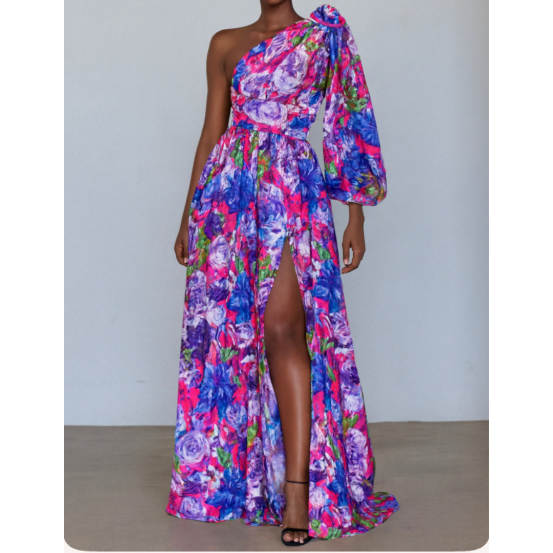 Damen Hoher Schlitz Blumen Hochzeitsgast Kleid | Maxi
