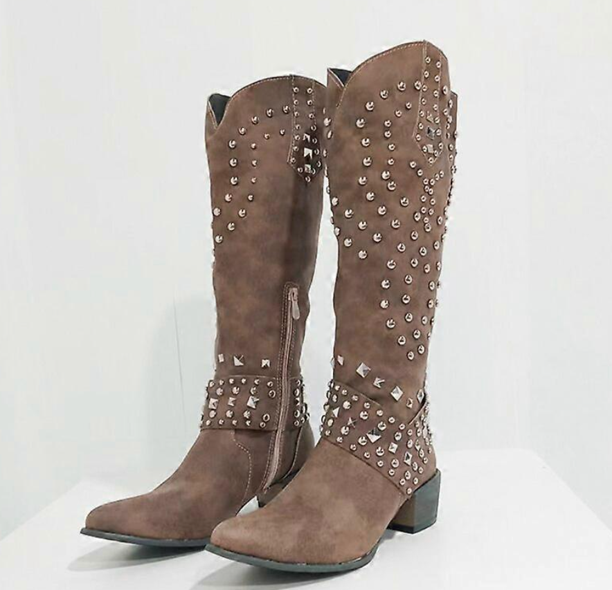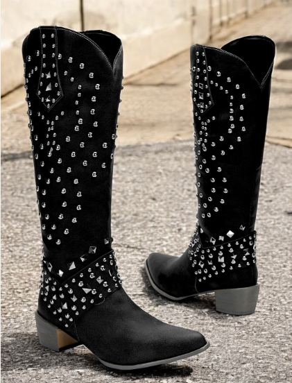 Auffälliger Western-Look: Kniehohe Silhouette mit moderne Design für einen stilvollen Auftritt.