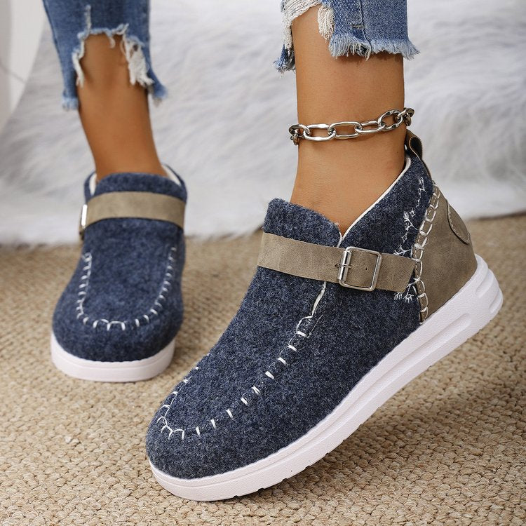Damen-Winterstiefel zum Hineinschlüpfen mit Schnallenriemen | Lässig