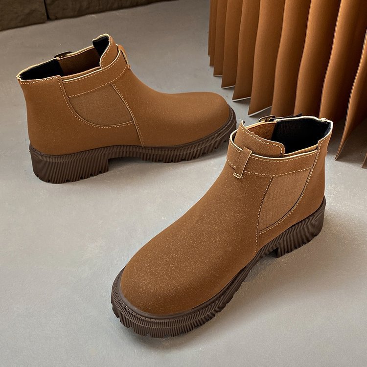 Diese Damen-Winterstiefeletten mit runder Zehenpartie und Retro-Schnalle bestechen durch ihre kompakte Silhouette und ihr klares Design – ideal für die kalte Jahreszeit. Die Schnalle greift klassische Designelemente auf und setzt einen markanten Akzent.