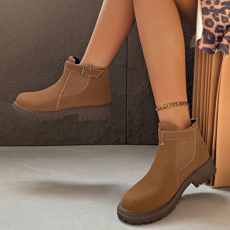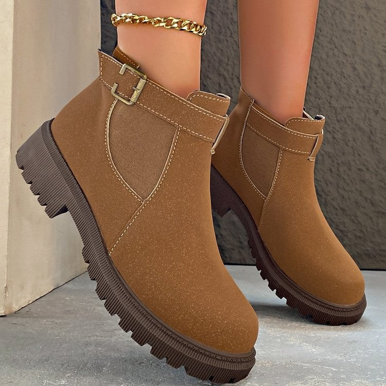 Damen-Winterstiefeletten mit runder Zehenpartie | Retro-Schnalle