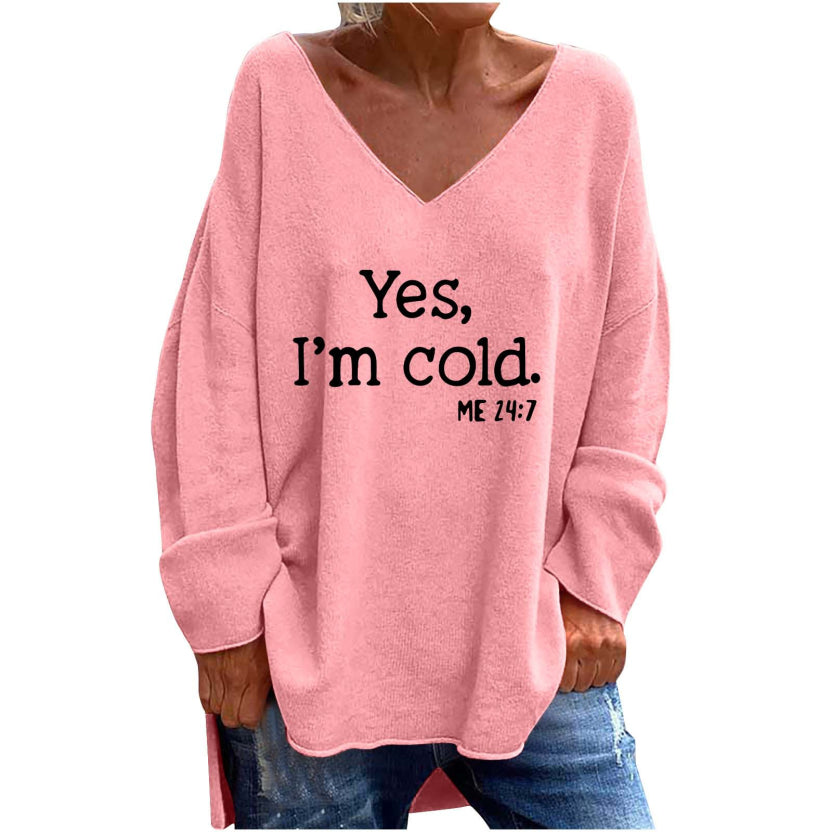Silasa | Damen-Pullover mit Oversize-V-Ausschnitt und Textdrucken | Warme und Locker Geschnitten