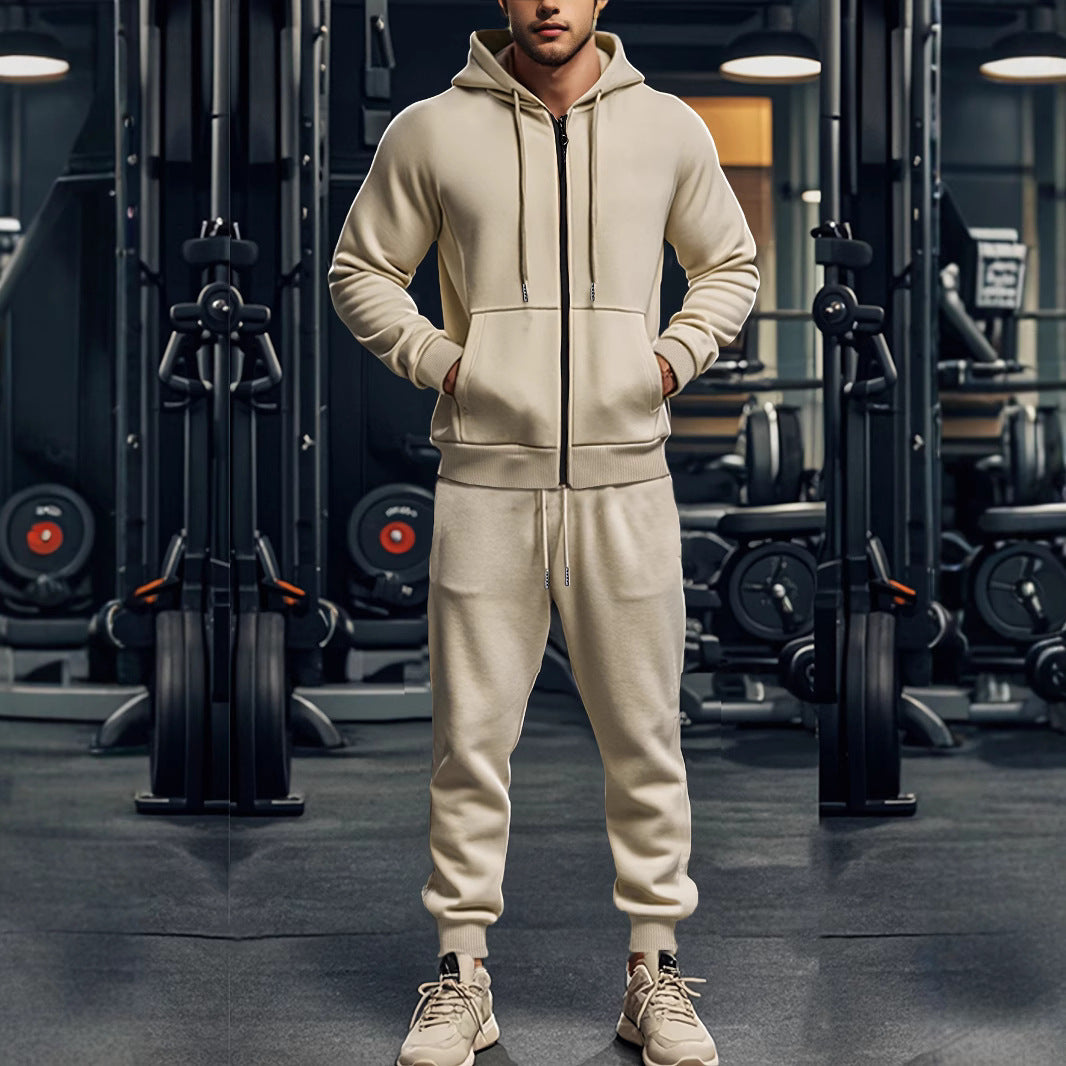 Dieses Herren-Trainingsanzug-Set mit Kapuzenpullover und Reißverschluss ist auf Freizeit und tägliche Aktivitäten ausgerichtet. Die abgestimmte zweiteilige Ausführung sorgt für ein geschlossenes Erscheinungsbild, während der Reißverschluss eine praktische Handhabung ermöglicht.