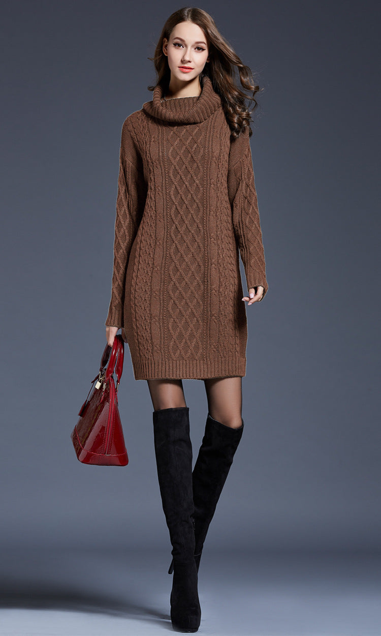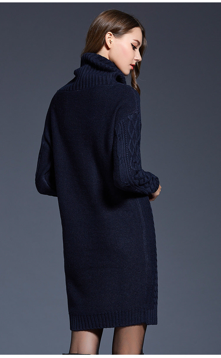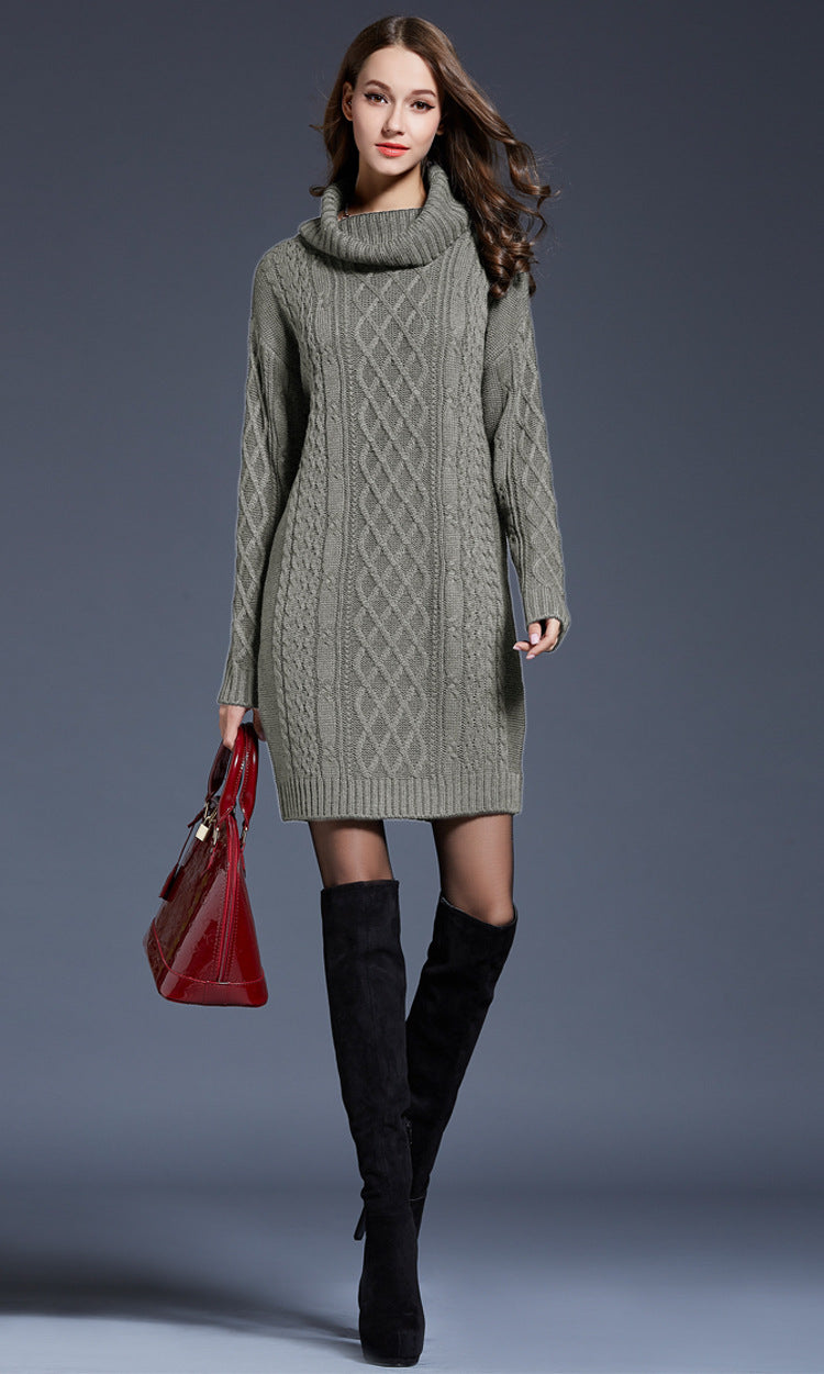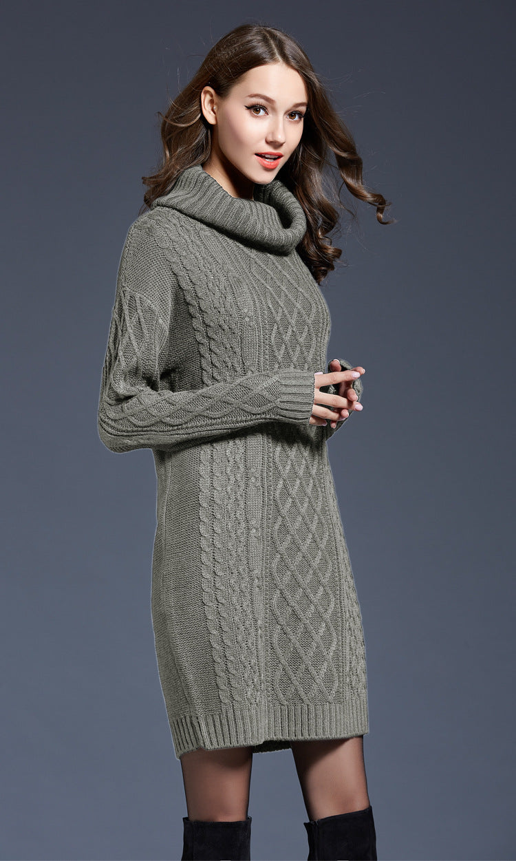 Mini-Strickkleid für Damen mit hohem Kragen | Lange Ärmel