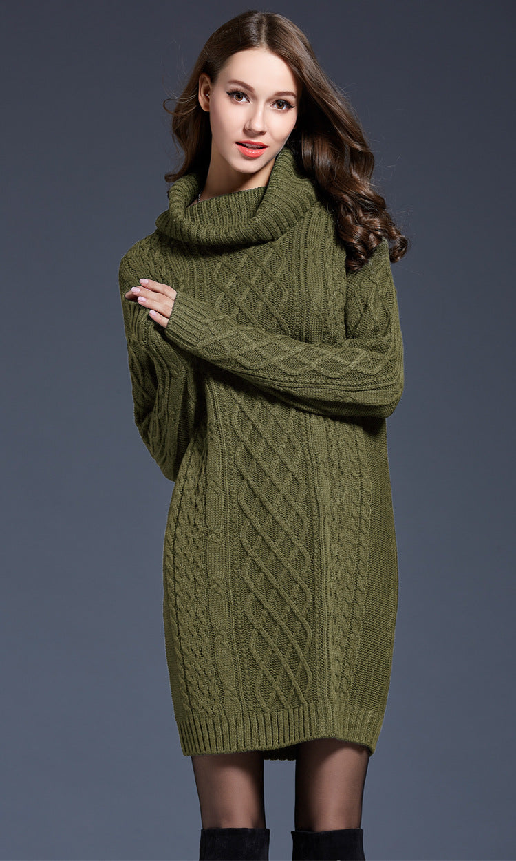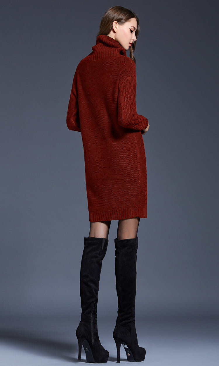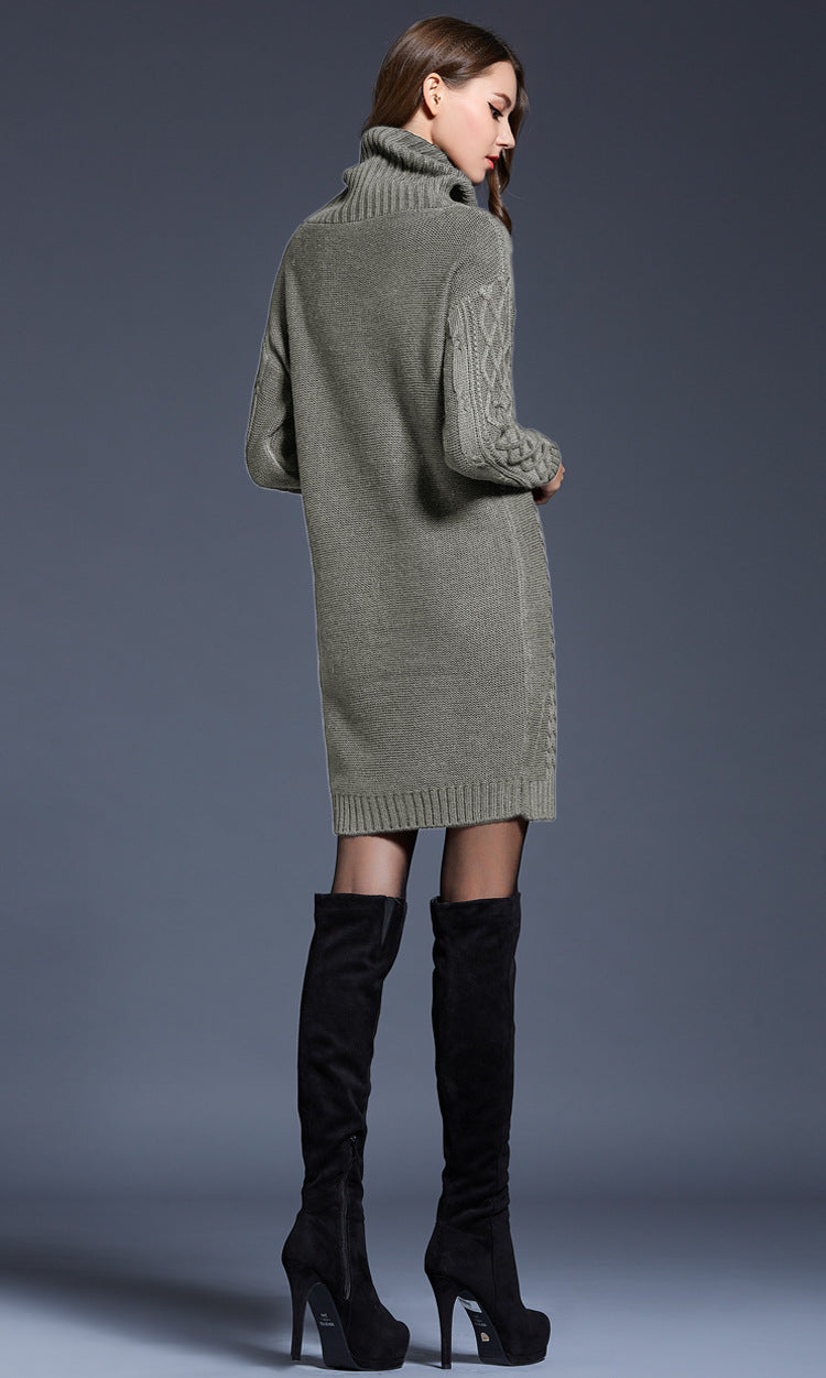 Mini-Strickkleid für Damen mit hohem Kragen | Lange Ärmel